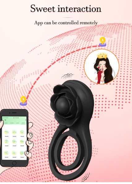 ANILLO VIBRADOR FLOR 9 MODOS – CON CONTROL REMOTO Y DOBLE ESTIMULACIÓN | DISPONIBLE EN ROSADO Y NEGRO