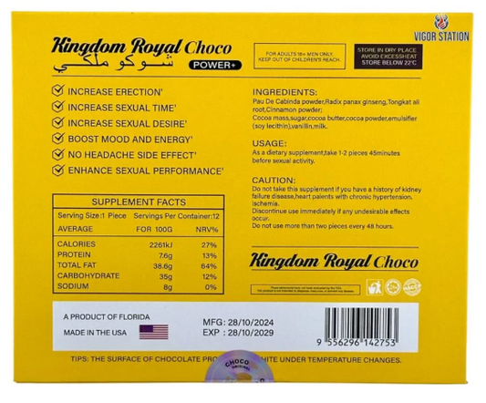 CHOCOLATE AFRODISIACO ROYAL MASCULINO POR UNIDAD 10G
