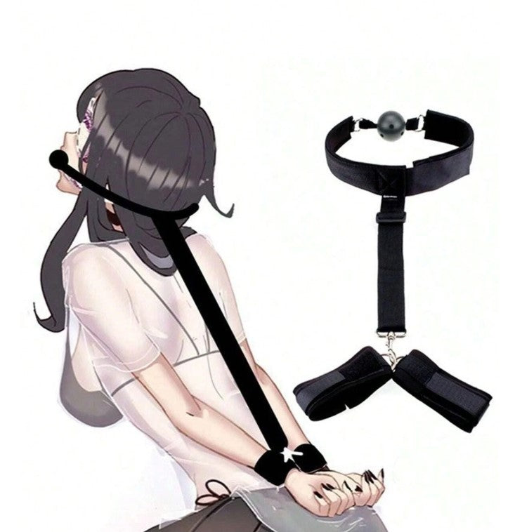 ESPOSAS DE AMARRE DE ESPALDA CON MORDAZA BONDAGE